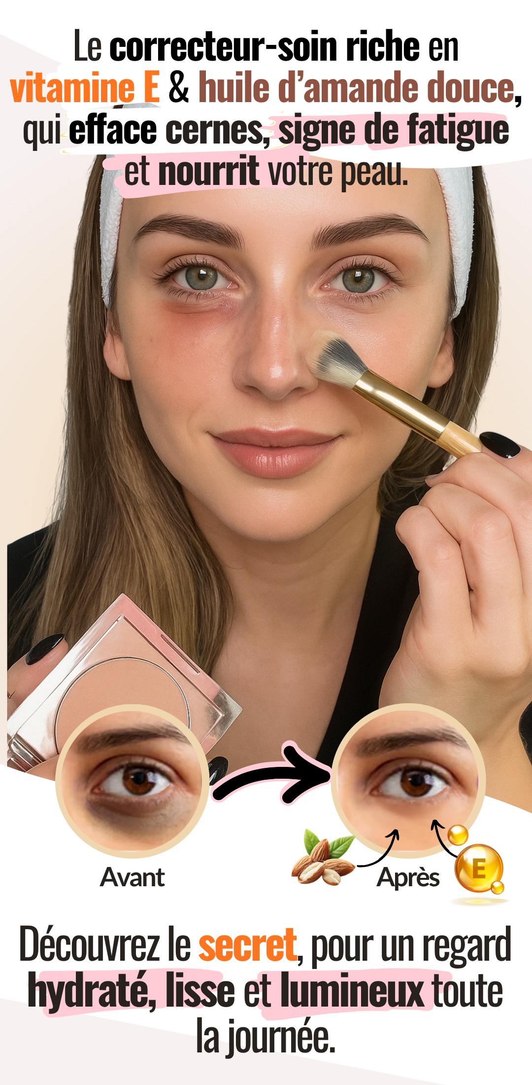Je suis fan de ce correcteur-soin ! Couvrance totale et hydratation en un seul geste. Sa formule crémeuse (sans parabènes/phtalates) lisse mes ridules, ne file pas dans les plis et ne dessèche pas. J'ai constaté que la vitamine E et l'huile d'amande douce aidaient à réduire mes poches. La teinte est parfaite (« moyen-bronzée »). Résultat impeccable !